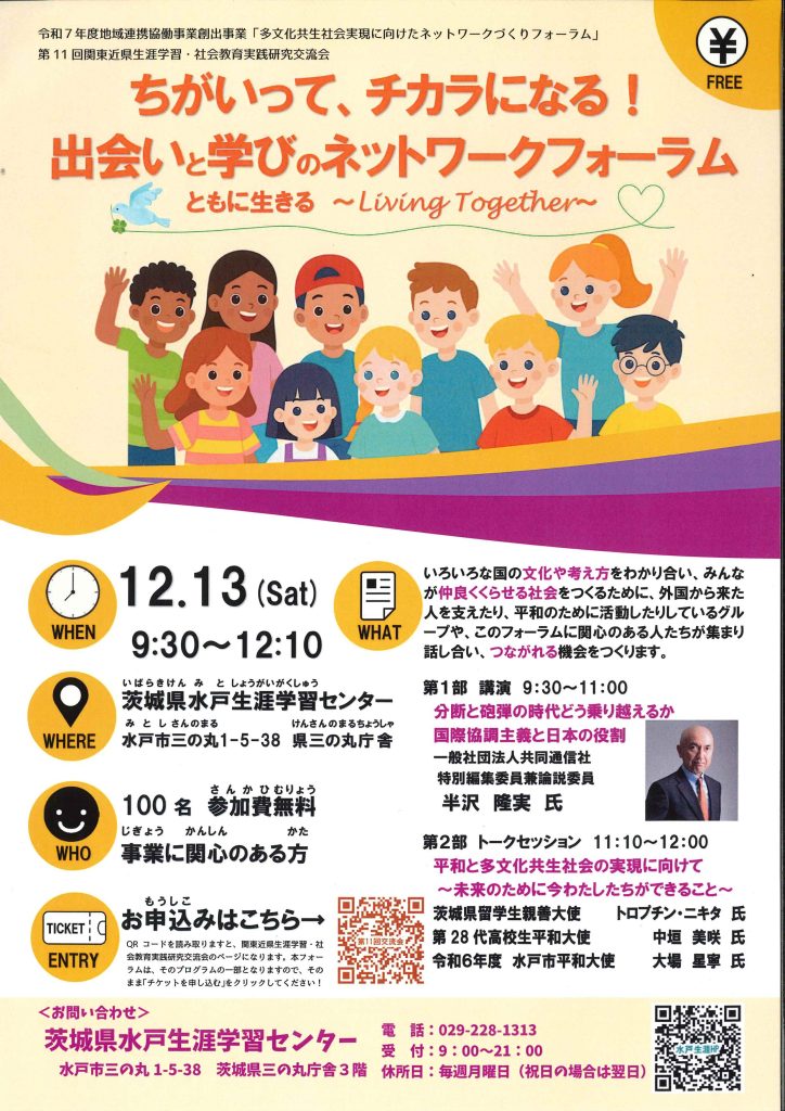 【主催】茨城県水戸生涯学習センター(水戸市三の丸1-5-38 県三の丸庁舎)Tell: 029-228-1313