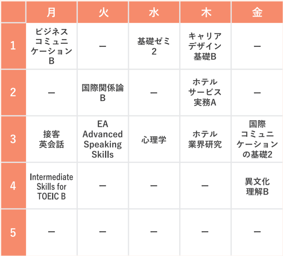 時間割 2年次秋学期